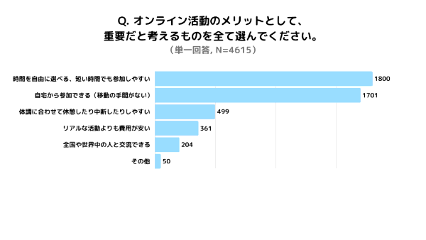 “時間・場所に縛られない柔軟性”が、参加を後押しする要因となっていることがわかりました。