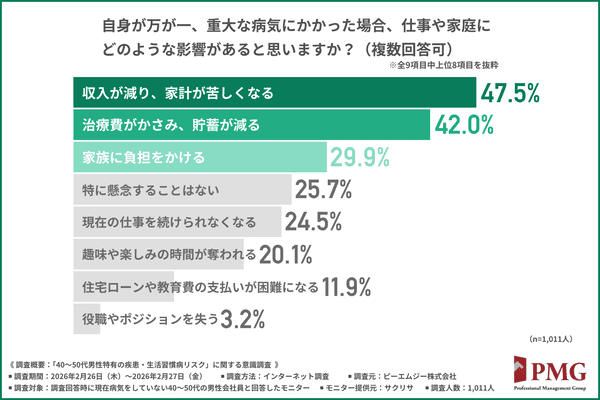 重大な病気による影響は「収入減・家計苦」への懸念がトップ